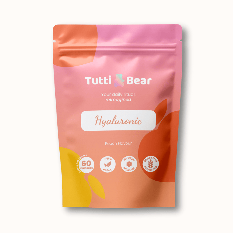 Apresentamos TuttiBear Hyaluronic Acid Gummies - a suadose diária de hidratação profunda. Capturámos o poder de ligação da hidratação do Ácido Hialurónico de alta qualidade e infundimo-lo numa deliciosa goma de Pêssego sem açúcar. Enriquecida com Vitamina C e B3, esta fórmula foi concebida para saciar a sede da sua pele de dentro para fora, suavizando as rídulas e restaurando a sua luminosidade natural.