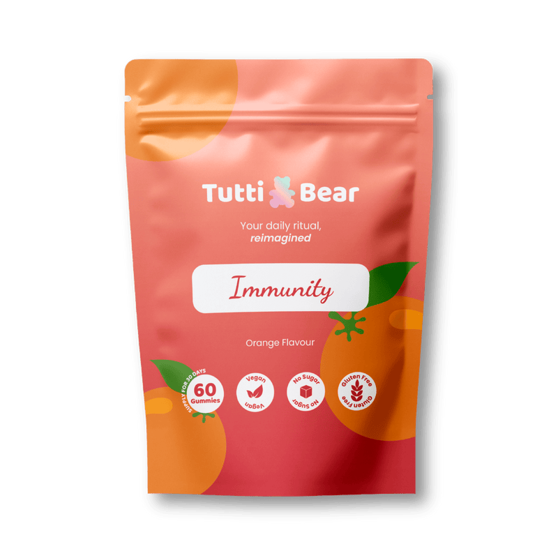Apresentamos TuttiBear Immunity Gummies - o seudelicioso escudo diário. Formulámos uma mistura de defesa abrangente com o poder da Equinácea, do Zinco e da Vitamina C, sobrecarregada com Selénio e Probióticos. Estas gomas de laranja saborosas e sem açúcar tornam o apoio imunitário fácil, ajudando-o a manter-se resistente, energizado e pronto para tudo o que a vida lhe oferecer.